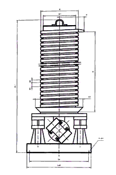 DZC系列垂直振動(dòng)輸送機(jī)的驅(qū)動(dòng)裝置振動(dòng)電機(jī)安裝在輸送塔下部,兩臺(tái)振動(dòng)電機(jī)對(duì)稱交叉安裝,輸送塔由管體和焊接在管體周圍的螺旋輸送槽組成,輸送塔座于減振裝置上,減振裝置由底座和隔振彈簧組成。當(dāng)垂直輸送機(jī)工作時(shí),根據(jù)雙振動(dòng)電機(jī)自同步原理,由振動(dòng)電機(jī)產(chǎn)生激振力,強(qiáng)迫整個(gè)輸送塔體作水平圓運(yùn)動(dòng)和向上垂直運(yùn)動(dòng)的空間復(fù)合振動(dòng),螺旋槽內(nèi)的物料則受輸送槽的作用,作勻速拋擲圓運(yùn)動(dòng),沿輸送槽體向上運(yùn)動(dòng),從而完成物料的向上(或向下)輸送作業(yè)。