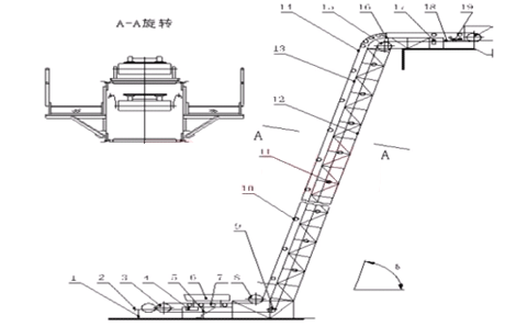 大傾角皮帶輸送機(jī)(擋邊帶式輸送機(jī))整機(jī)布置形式: