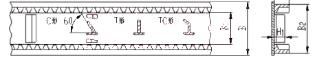 ⑴、輸送帶波紋擋邊膠帶由三部分組成:用普通輸送帶作為基帶,在帶的兩側(cè)增加波形擋邊; 橫隔板橫裝在兩波形擋邊之間。橫隔板主要有T、C、TC三種布置形式,其間距根據(jù)輸送量、輸送傾角及物料塊度等要求確定。