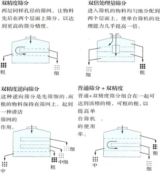 ★因此建立水平與拋擲三維翻滾運(yùn)動(dòng)。物料從中心到外緣在整個(gè)篩面上均勻分散,從而以螺旋運(yùn)動(dòng)往軸向傳播。細(xì)小顆粒從而完成了整個(gè)篩分過程。